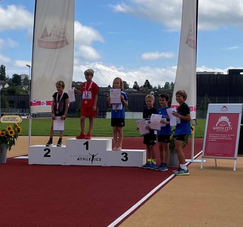 Mit einem Team von sechs Bolliger Athlet:innen reisten wir am Samstag, 3. September, nach Biel an den Kantonalfinal MILLE Gruyère (1000m-Lauf). Sie alle haben über die Vorausscheidung am Schnäuschte Mittuländer im Frühling in Bern die Qualifikation für den Final der schnellsten 1000m-Läufer:innen des Kantons geschafft. Als jeweils Viertplatzierte verpassten Till und Léonie Stadelmann in der Kategorie M resp. W8 die Bronzemedaille nur ganz knapp.