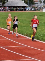 Léonie ging als Erstplatzierte in die 2. Stadionrunde und musste sich nach einem Misstritt leider noch von drei Läuferinnen überholen lassen; mit ihrer Zeit von 4:05,43 unterbot Léonie aber ihre Bestzeit um sagenhafte 15s und holte sich damit auch gleich den Vereinsrekord, der zuvor bei 4:14,45 lag. Ein wahrliches Hitchcock-Finale lieferte sich Till in seinem Lauf: Auf der Schlussgerade duellierten sich drei Jungs um den Bronzemedaillenplatz, darunter auch Till. Nachdem Till den Schlussspurt angezogen hatte, vermochte ihm einer der beiden Kinder noch zu folgen und es kam zu einem Fotofinish. Till verpasste die Bronzemedaille letztlich um nur 4 Hundertstelsekunden, verbesserte aber gleichzeitig seine persönliche Bestleistung um 8s auf nunmehr 3:44,12.
