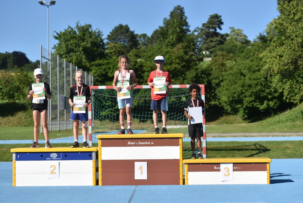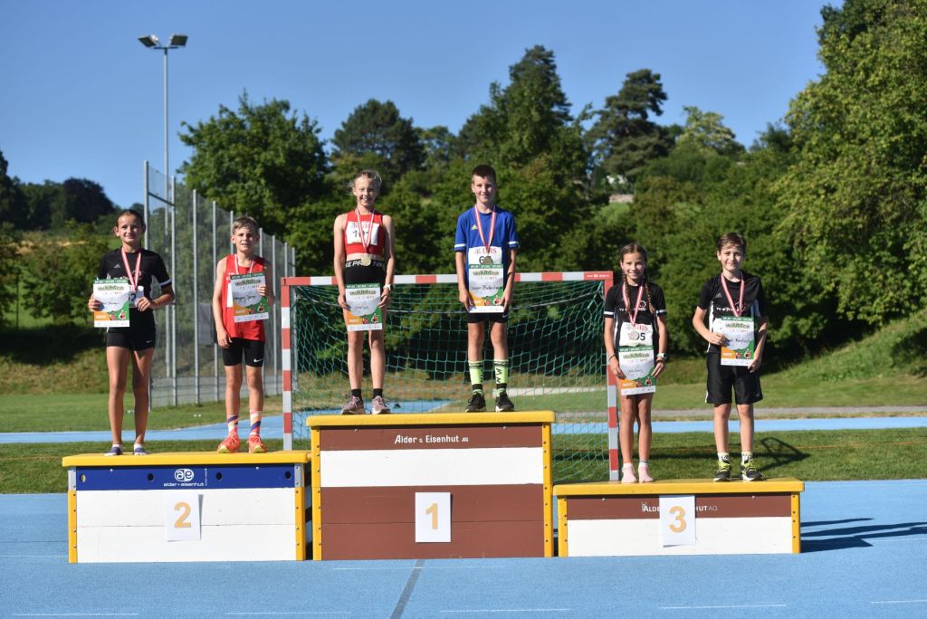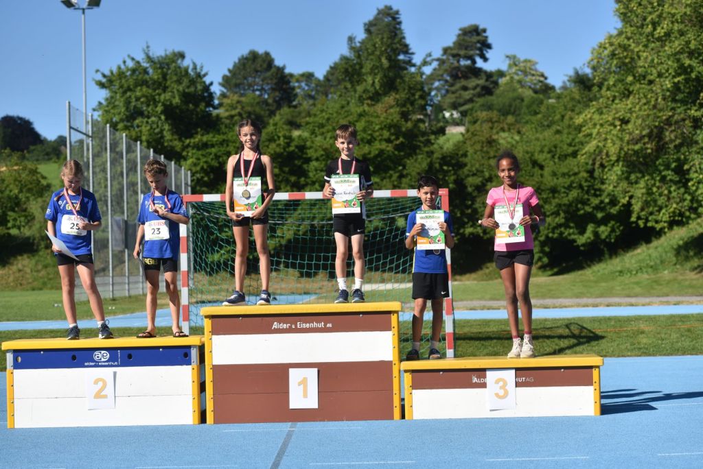 • In der starken Kategorien M11 platzierten sich unsere jungen Athleten allesamt im vordersten Drittel. Mit dem 3. Rang schaffte Noel Rentsch mit neuer Vereinsrekordpunktzahl von 1326 Punkten den Sprung aufs Podest. Wie in derselben Mädchenkategorie brillierten die Jungs (Noel, Till Stadelmann und Morris Longoni) mit neuen persönlichen Bestleistungen im Weitsprung und den Plätzen 4 und 8.